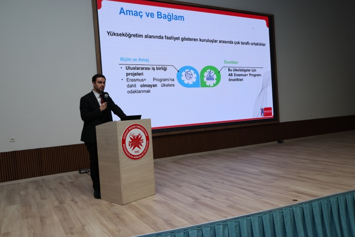 TTO koordinasyonunda, Dışişleri Bakanlığı Türkiye Ulusal Ajansı’ndan gelen uzmanların katılımıyla üniversitemizde “Yıldızlar Ligi: Erasmus+ Merkezi Projeler” başlıklı bilgilendirme toplantısı gerçekleştirildi. Toplantıda Erasmus+ Merkezi Projeler kapsamında başvuru süreçleri, öncelikli alanlar, değerlendirme kriterleri ve iyi uygulama örneklerine ilişkin faydalı bilgiler paylaşıldı. Akademik ve idari personelimizin yoğun ilgi gösterdiği etkinlik, merkezi projelere yönelik farkındalığın artırılmasına katkı sağladı. Katılım sağlayan tüm uzmanlarımıza ve ilgilenen paydaşlarımıza teşekkür ederiz.