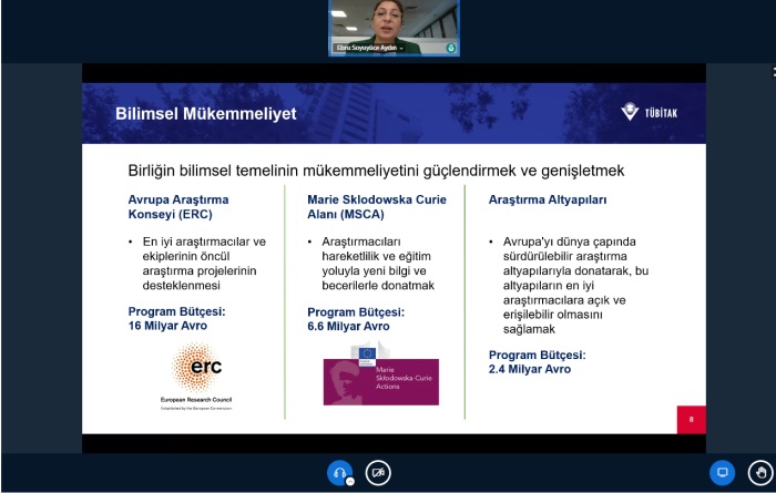 TÜBİTAK ABÇPM Araştırma Altyapıları Ulusal İrtibat Noktası Uzmanı Ebru SOYUYÜCE AYDIN'ın konuşmacı olduğu "UFUK AVRUPA'YA GİRİŞ: FIRSATLAR VE DESTEKLER" isimli etkinliğimizi yüksek bir katılımla gerçekleştirdik.